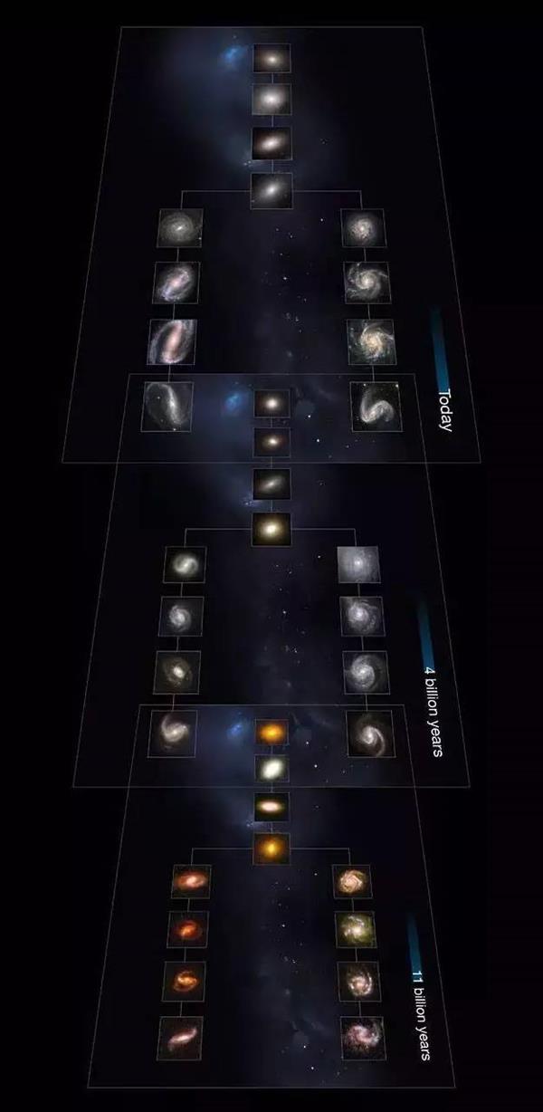 宇宙历史上不同时期星系的特点。NASA / ESA
