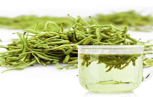 (2)用法:将金银花和绿茶置于茶杯中用150ml开水冲泡5~10分钟即可饮用至茶味变淡为止。
