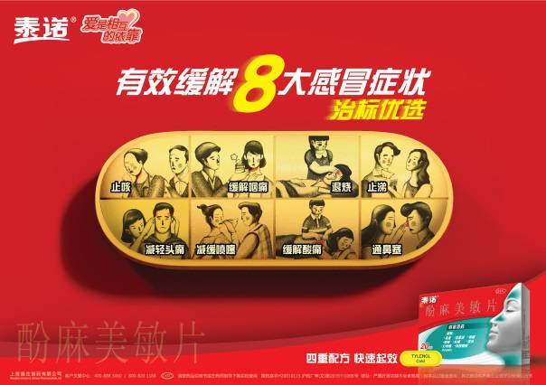 对于快节奏工作生活的你来说,寻求的是先缓解头疼咳嗽流涕等各种感冒症状--就是治标!目前拿市面上销售的经典感冒药泰诺来说,它主要成份为对乙酰氨基酚、伪麻黄碱、右美沙芬和氯苯那敏四种成份,帮助你战胜8大感冒症状,是患者的治标优选。