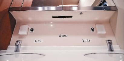 “最怕上厕所、早晨洗脸排队! ”每节车厢有3个卫生间,可以减少排队等候的时间,洗手盆也设置了2个。