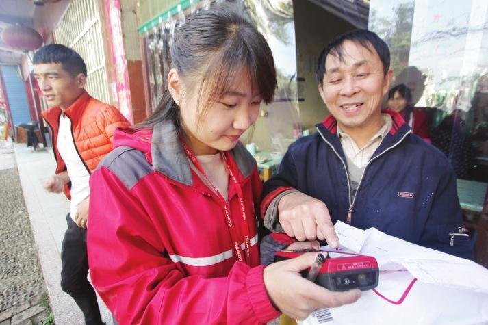 吴阿红在仔细核对包裹信息。她说,这份工作虽然又苦又累,但在工作中,她也收获了许多感动。