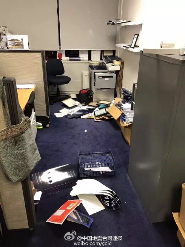 新西兰惠灵顿网友发出现场照片,称当地震感强烈。