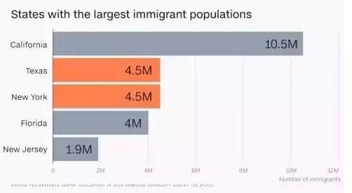 加州是个非常多元化的州,拥有全美最多的移民。目前加州移民人口达到惊人的1050万,是第二的德州和纽约州的两倍还多!而整个加州人口也还不到4000万。