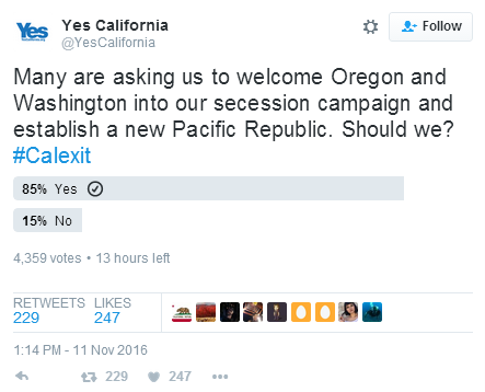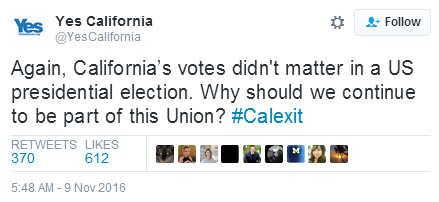 这次川普当选总统后,呼吁Calexit的要求疯传网络。