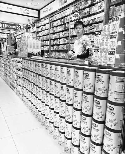 香港旺角弼街一家药店里摆放着国产奶粉。本报记者 张庆波摄