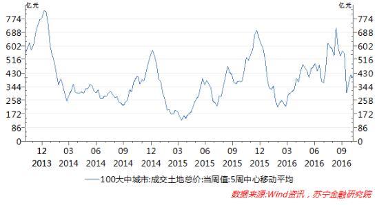 另一方面,房地产市场景气回落将对地方财政收支形成较大压力。根据方正证券研究所的估算,地方政府从房地产交易中所得(包括土地出让金和11种房地产相关税收)占房地产销售额的3/4以上,如2014年全国商品房销售额为8.73万亿元,土地出让金和11种相关税收6.56万亿元,地价和房地产相关税收占商品房销售额达75%。今年9月下旬以来房地产调控政策收紧,已经对最近两个月的土地成交产生了显著影响。10月份,全国100个大中城市土地成交总价为1524亿元,大幅低于今年三季度土地市场月均2500亿元的成交额,11月前三周,土地成交额为1280亿元,依然十分低迷。由此可见,土地市场整体向下的趋势已较为明显。