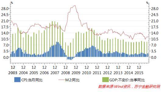 弗里德曼有一句至理名言:“任何通胀都是货币现象”。截至10月末,我国央行积累的M2余额高达152万亿元,M2增速长期大幅高于GDP增速和CPI涨幅之和(参见下图)。在现代货币和金融市场条件下,吸纳货币的资产池包括商品和资本品两个领域,商品价格的涨跌表现为生产领域和消费领域的通货膨胀,资本品价格表现为房地产、股市和债市价格的涨跌,从去年股市热到今年的楼市热,二者之间似乎有一定的交替现象。在市场对去年股灾仍“心有余悸”和债市容量相对有限的情况下,M2仍将保持稳定的增长,如何吸纳这些新增流动性,实体经济可能是个去处,但资金流向哪里却是决策当局无法左右的。历史经验表明,从房地产“资产池”流出的社会资金和大量的新增流动性,再次涌向农产品市场的可能性不小。