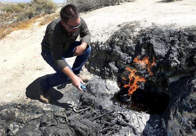 (图为在美国页岩油发现地,直接点火就能燃烧的石头)