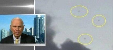 UFO探索者声称,在一个关于俄罗斯轰炸叙利亚的新闻录像中,发现两个UFO飞过一架正在发射导弹的俄罗斯战斗机。  据英国媒体报道,墨西哥的UFO探索者在youtube上发布分析视频,在一则新闻录像中,在俄罗斯战斗机轰炸叙利亚时出现两个快速飞过视野的球形UFO.  报导说,墨西哥超自然现象电视台对此进行了专门报导。该电视台的新闻解说员卡洛斯-克莱门第(Carlos Clement)说:「我们可以看到,两个UFO在飞近这架战斗机,一架战斗机正在拍摄导弹爆炸。这些是红外线摄录的画面。」