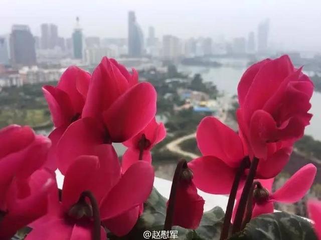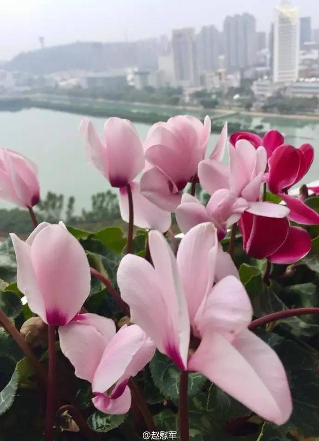 厦门筼筜湖装点筼筜湖畔的仙客来花,手掌大小的叶子在几根深色的茎的支撑下,紧紧簇拥在花盆中。