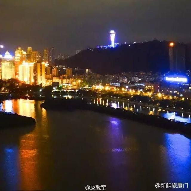 筼筜湖在白天和晚上都有各异的美景。网友“赵慰军”日前就发布微博称: