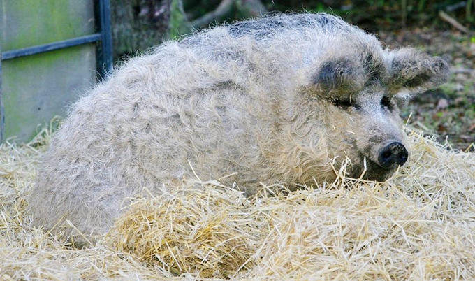 在国外存在这样一种生物:它的名字叫做绵羊猪。它原产自匈牙利和奥地利一带,这种猪体系硕大,但奇特的就是它们一身卷毛,远看就像一只绵羊。