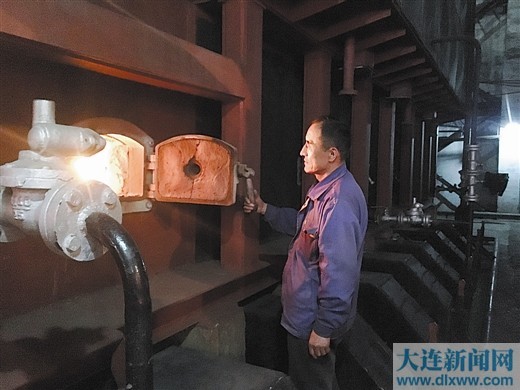 司炉人员在查看锅炉炉火情况。大年三十21时许,伴随着鞭炮声,记者来到大连虎滩供暖工程有限公司锅炉房,只见3台锅炉前方挂上了一排12个大红灯笼,锅炉房里年味儿十足。总经理孙林正盯着电脑上的供热实时数据监测