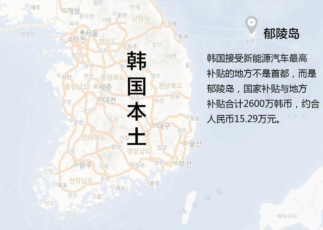 补贴的金额也有所增长,国家补贴1400万韩元,各地方根据自身经济条件,补贴300~1200万韩元不等。全国最多补贴的地方是郁陵岛。它是远离韩国本土的一个小岛,享受国家补贴1400万韩币,地方补贴1200万韩币,总共2600万韩币的补贴,折合人民币15.29万元。其次是庆州,享受2400万元韩币补贴,相当于14.11万元人民币。