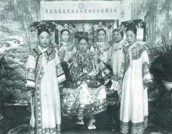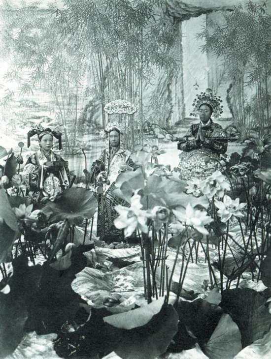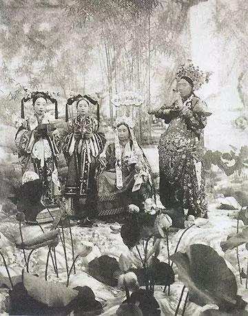 慈禧太后扮观音照,左起:四格格、慈禧、李莲英。