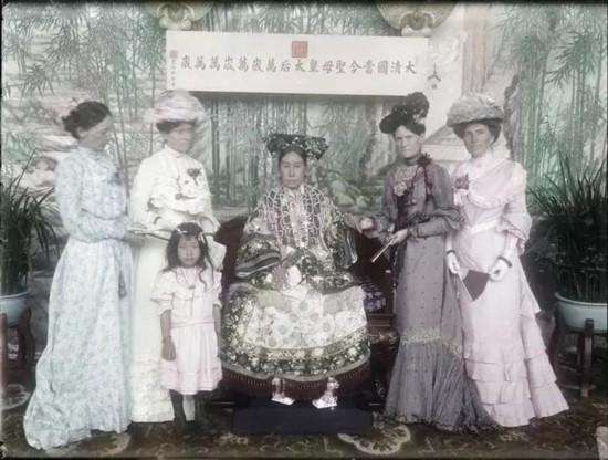 慈禧在颐和园乐寿堂与外国公使夫人合影。