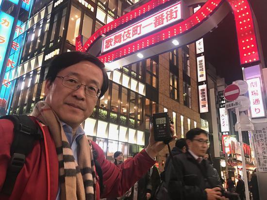 随后去东京新宿看望北京著名律师陈旭先生,我们两人在歌舞伎町一起检测,也只有00.13μSv。