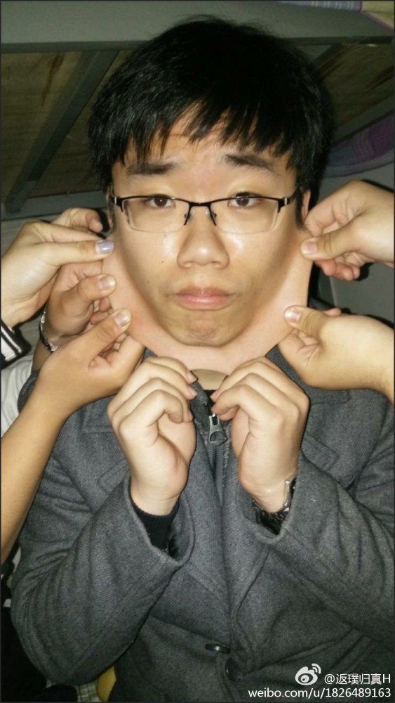 网友“美洁欧巴”晒图:一边脸笑一边脸哭,不信你遮住半边脸看看。