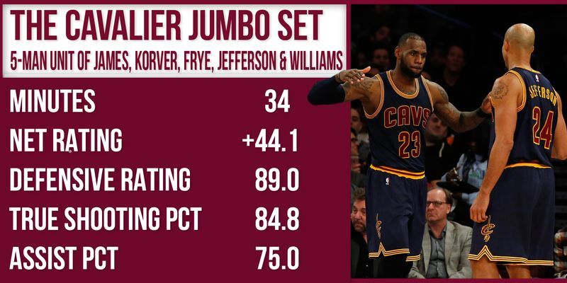 于是在香珀特受伤的情况下,泰伦·卢尝试着让短工球员德里克·威廉姆斯客串控卫,形成了德里克·威廉姆斯、科沃尔、理查德·杰弗森、詹姆斯和弗莱的阵容。这套怪阵本是泰伦·卢不得已进行试验的,没想到收到了意想不到的效果。