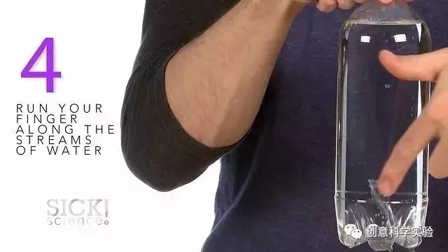 然后用手指横向擦过分散的几股水流,再拿开手指