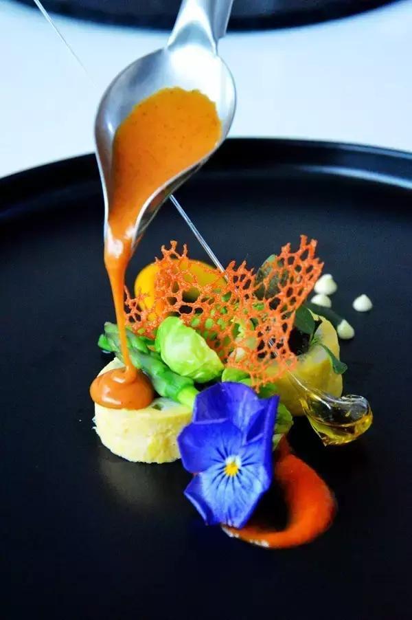 所以在他的工作室你很难说这道菜是什么什么菜系?甚至你都很难定义这是西餐还是中餐,这就是融合的概念!当然融合的前提是好的创意,你得考虑它的成品,在口味上、营养搭配是否被接受,而不是——瞎做!