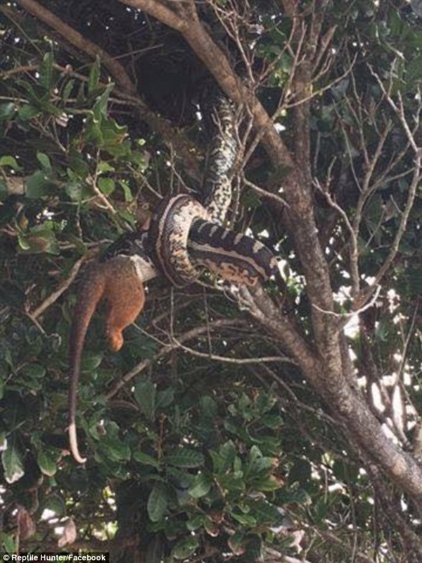 [分享]巨蟒倒挂树枝生吞大负鼠 画面不忍直视
