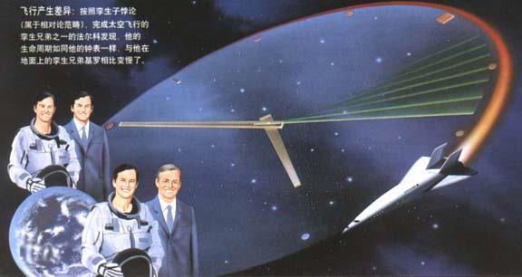 比如从两个双胞胎说起,其中一个留在地球上,而另一个乘太空飞船,以接近光速的速度,飞往距离太阳系不远的一个星球并返回。当进行星际旅行的那个人回到地球,会发现他的年龄增长得更慢,比留在地球上的那位看起来更年轻。
