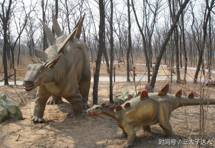 出现于一亿五千万年前的剑龙,它最大的特征就是背部耸起的两排骨板,以及尾巴上生着尖棘。剑龙是草食性的恐龙,行动缓慢,它身上的骨板和尾巴上的尖棘,便成了躲避肉食性恐龙最好的防卫了。