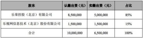 乐视网将放弃其尚未认缴的150万元人民币注册资本对应的15%的股权权利,以及前期乐视控股授予的提案权、表决权,转由乐荣控股出资认购