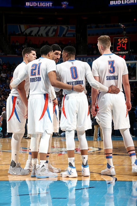 威斯布鲁克拿下23分13篮板13助攻,以本赛季31次三双记录,追平威尔特·张伯伦上升到历史第二位;奥拉迪普拿到20分4篮板。此前MVP之争的另一主角伦纳德得到19分2篮板,提前离场。