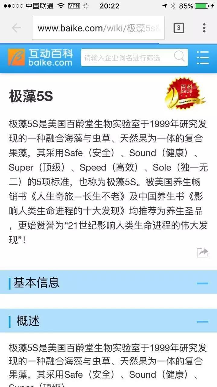 吃瓜群众们可不买账,因为他们发现,央视曝光的“极藻5s”虽然现在在百度百科上没法搜到,但是以前还是有的: