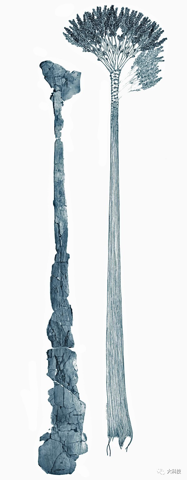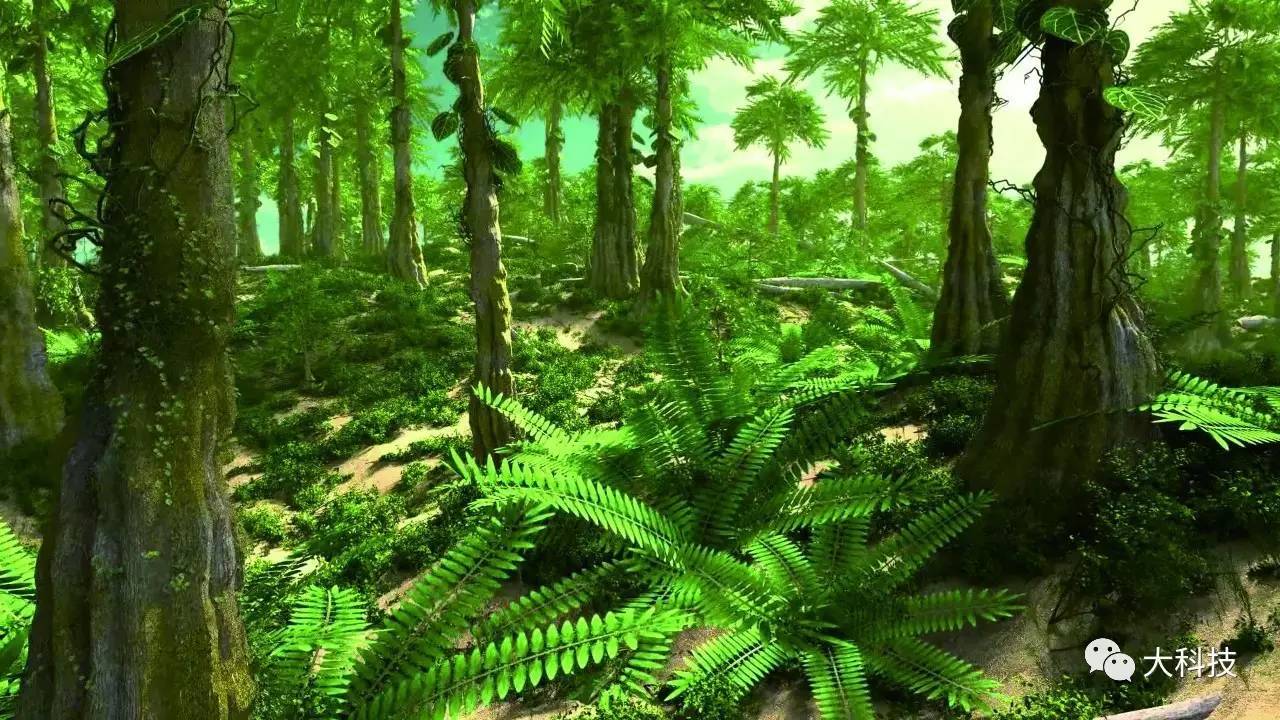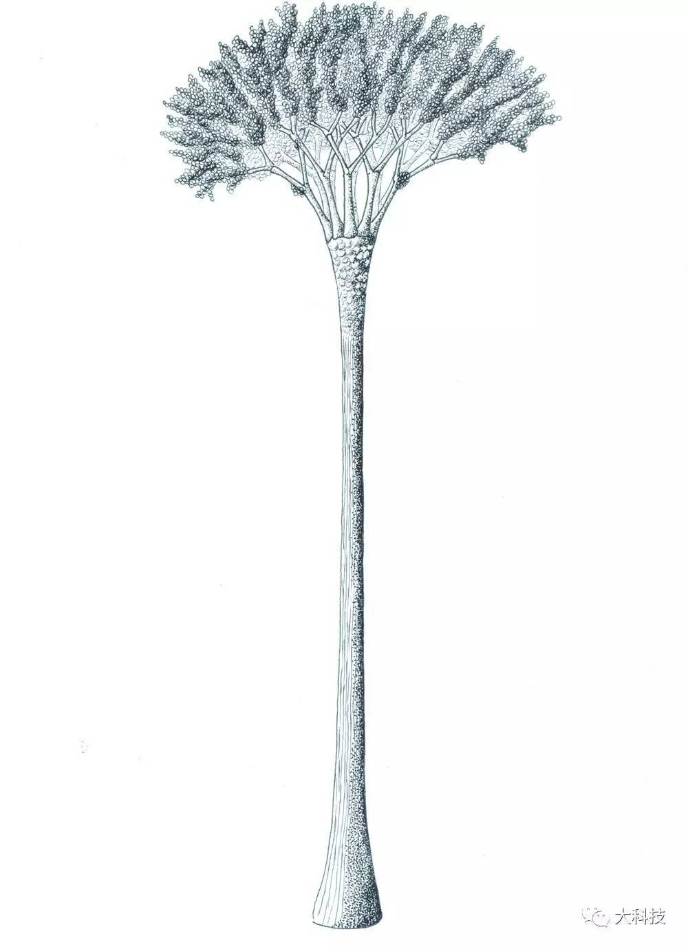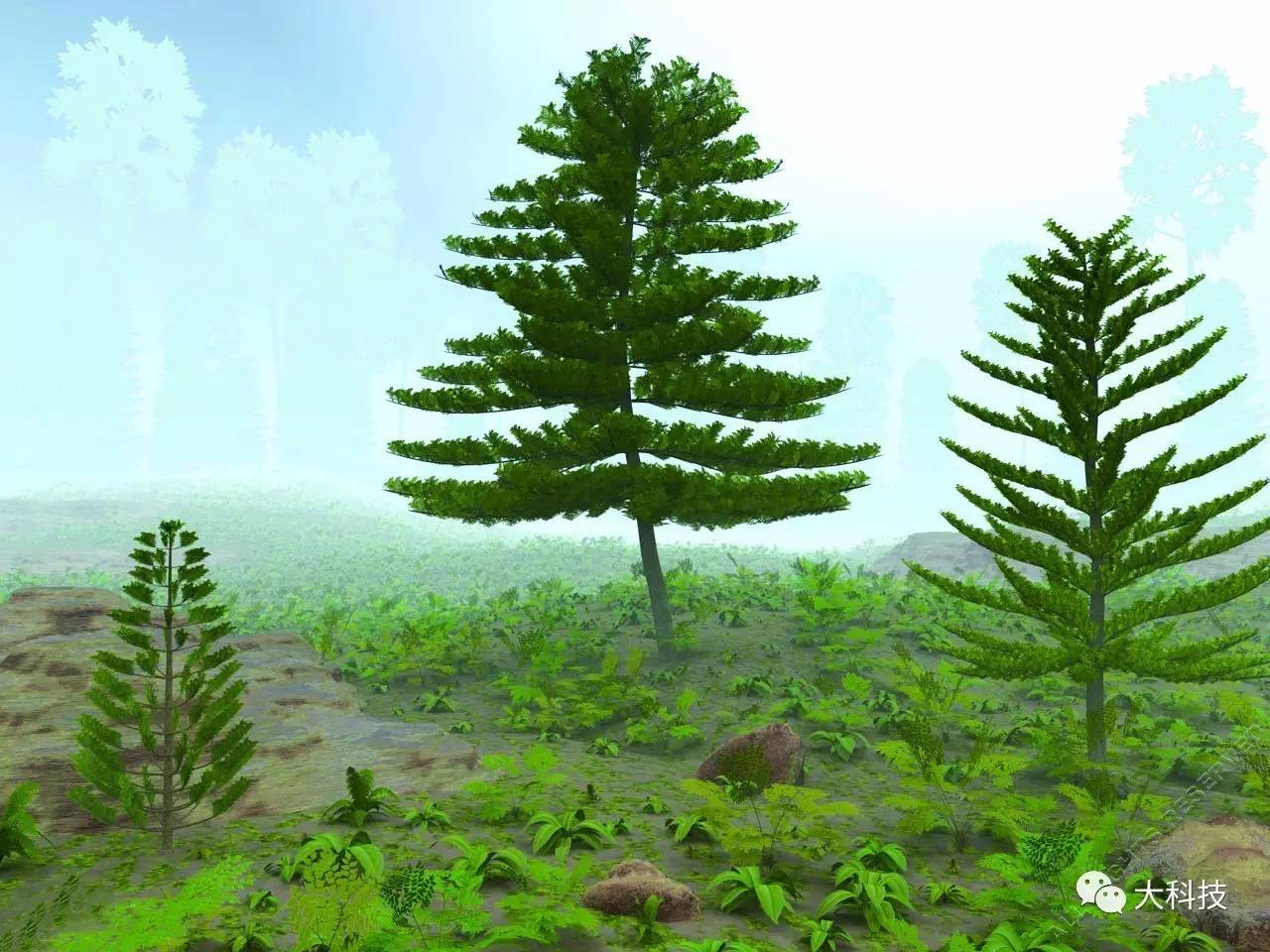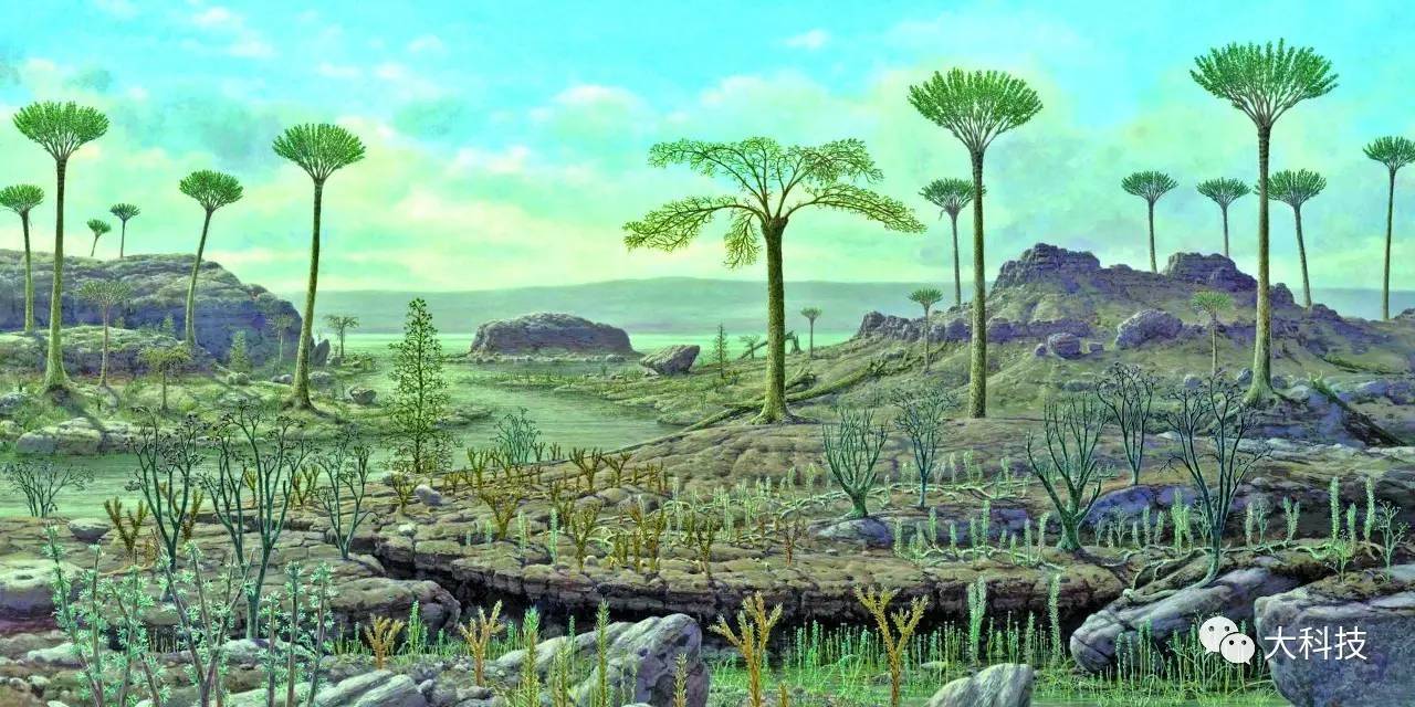 在泥盆纪(4.05亿至3.65亿年前)中后期,距今3.85亿年之时,出现了枝蕨纲树木。它们有发育较为完全的维管系统(由浅根和传导水的细胞构成),树干更为结实,能够支撑植物向上生长。现代的大多数树木都依靠种子延续生命链条,但当时的植物还没有进化出这种神奇的育儿装备,所以只能像蕨类、苔藓、细菌和菌类一样,依旧依靠孢子播种。枝蕨纲树木缺乏深厚的根系,这使得它们从土地中获得的水分和养料十分有限。不过它们的木质树干能够给予树木足够的支撑力,使得树木可以长得更高,这些高大的树木能够得到顶部充足的阳光,通过维管系统将水和养分通过根部输送至树木的顶部,在当时的环境下这些参天大树具有极大的竞争优势。