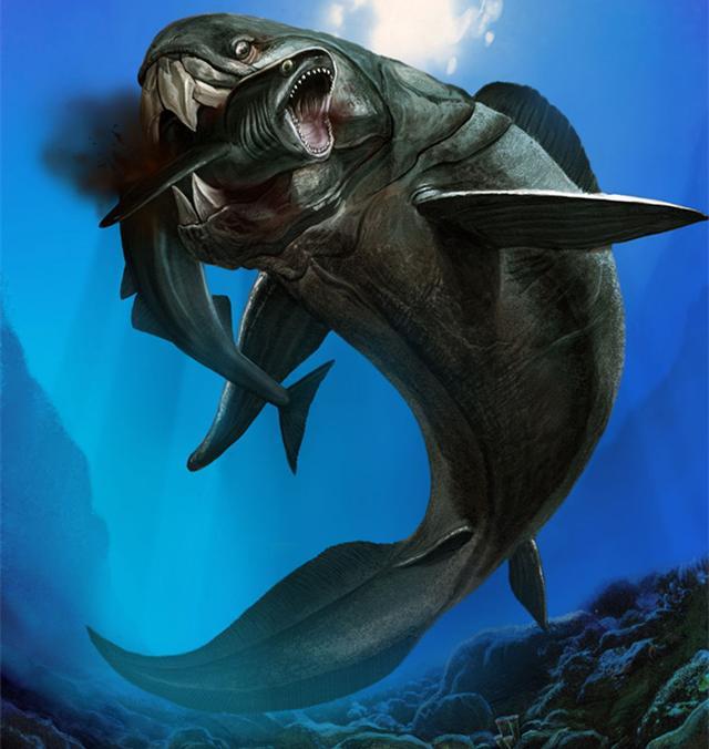 在这个名单中,可能邓氏鱼是外形最奇怪的一个了。它的头部和颈部覆盖有厚重坚实的甲板,宛如一个造型古怪的坦克,可以摧毁挡在前面的任何阻碍,而邓氏鱼确实做到了。邓氏鱼是生活在3至4亿年前的一种巨型食肉厚皮鱼,它身长可达11米,重达6吨,咬合力达到惊人的5吨,是当时海洋之中的绝对霸主,它可以随意捕食海洋中的任何生物,包括最早出现的鲨鱼,可能邓氏鱼是有史以来最早的百兽之王了,它的存在比陆上第一只恐龙的诞生还要早1.75亿年。