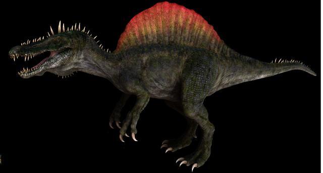 看过《侏罗纪公园》的朋友都会被其中的霸王龙形象所震撼,庞大的躯体,锋利的牙齿,轻松将汽车掀翻,追杀得人类四散奔逃。然而如果你要认为霸王龙就是最大的食肉恐龙,那你就想错了。埃及棘龙才是目前发现的体型最大的食肉恐龙。棘龙生活在1.4亿至6500万年前的北非。棘龙体长在12-19米,体重在4-30吨,之所以出现如此大幅度的差异,是人们对于棘龙的体形比例无法做出确定的判断。棘龙最显著的特点就是其背部明显的长棘,长棘最长可达1.65米,长棘连接成一个巨大的帆状物。对于长棘的作用,目前没有确定的说法,可能包含调节体温、储存能量、吸引异性等作用。