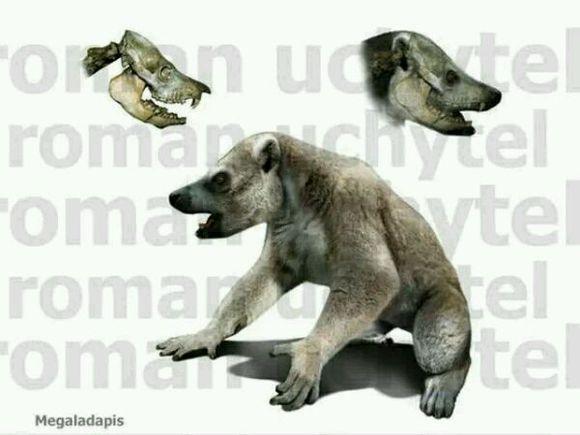 巨狐猴:科学家认为巨狐猴与现代狐猴是近亲,它的身高达到1.5米,体重接近75公斤以上,手臂比腿长,非常适合攀爬树木。由于体型太大无法跳跃,很可能多数时间是生活在地面上。巨狐猴生活在马达加斯加岛,像大猩猩一样四肢着地行走,对其骨骼放射性碳测定年代显示,500年前欧洲殖民者进入该岛大肆捕杀导致它们灭绝。