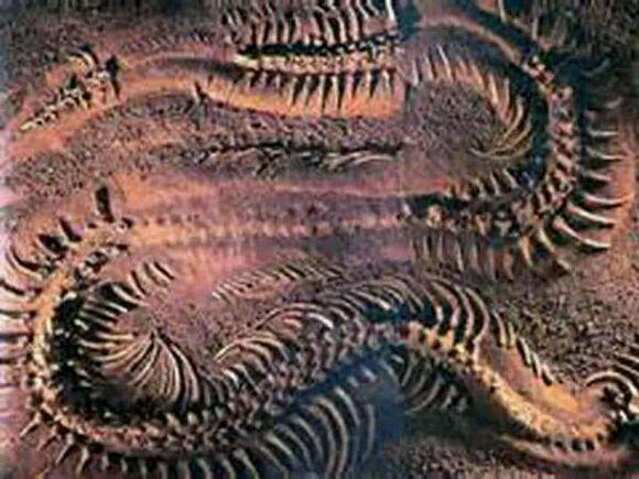 澳大利亚巨蟒:生活在上新世时期,这种庞大的蟒蛇缺少现代蛇灵活的下颌,考古学家指出,这种蟒蛇位于蜥蜴和现代蛇的进化状态之间。澳大利亚巨蟒没有毒,其体长可生长至4.5米,其内弯牙齿没有尖牙,能够有效抑制猎物。科学推测认为,它们于4万年前灭绝消失。