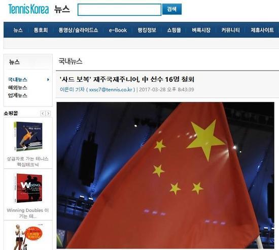 据韩媒报道,16名中国网球选手日前退出在韩国济州岛举行的国际网球联盟(ITF)济州国际青少年比赛。韩国媒体感叹,中国的"萨德报复"举措已扩大到体育领域。