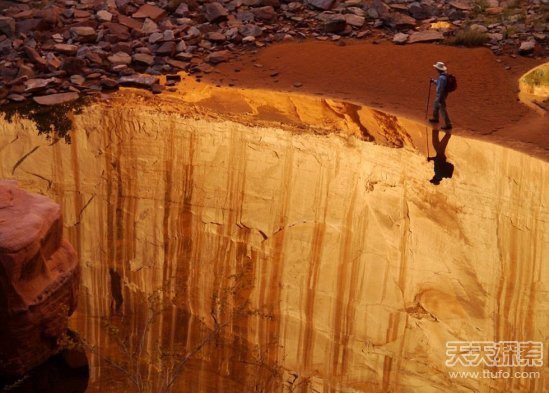 1、图为徒步者仿佛站在犹他州的峡谷边上,实际上是在河床上行走