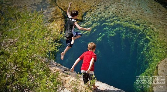 4、两个男孩看上去像要跳入一个深不见底的黑洞,实际上这是位于美国的贾柯布泉,水深9米