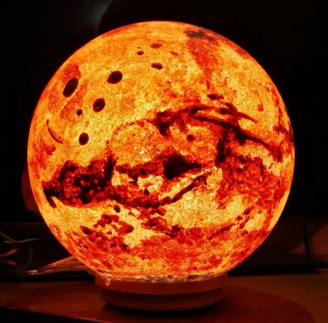 接下来,她凭借自己的智慧,开始在灯罩上绘制地球、月球、火星,甚至银河系,在每个星球制作中,都尽量做到还原,例如陨石坑、洼地都尽可能的接近真实。
