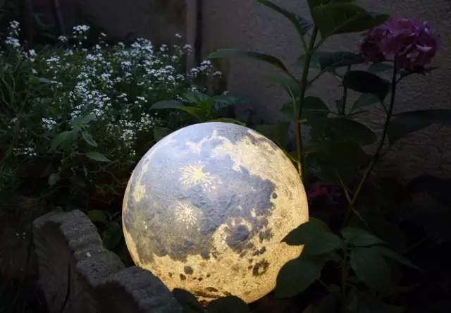 玛利亚在绘制这些灯具时,主要素材也就是灯的整体使用的是可循环利用和回收的户外花园地球仪。