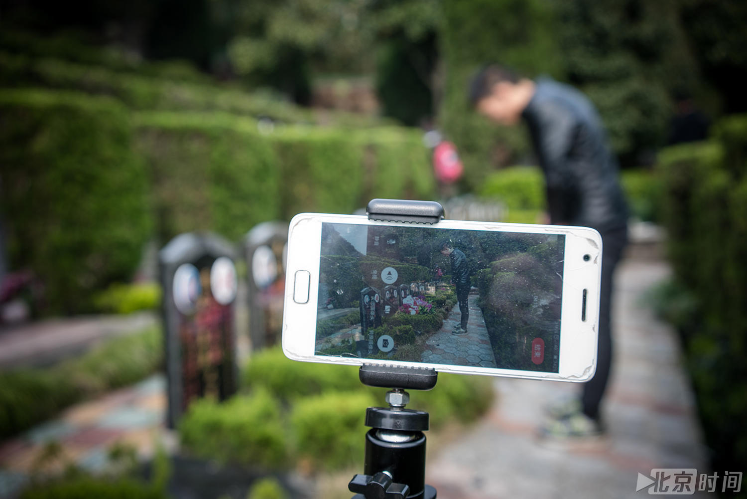 找墓地就花了1个小时,很多委托人也说不清楚具体的位置,找到墓地后,乔哥熟练地架起三脚架,打开手机,给委托人直播。