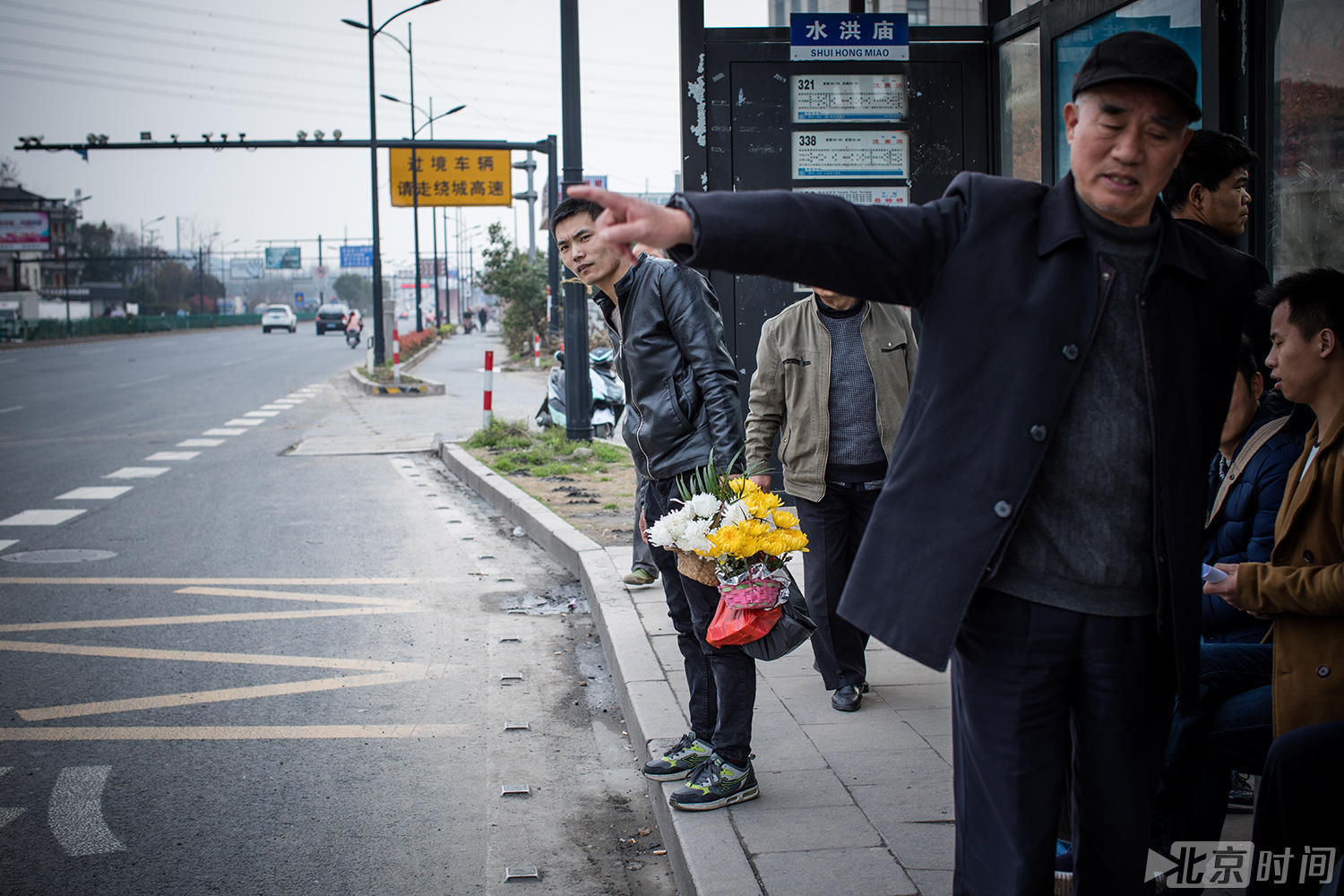 乔哥在公交车站,准备去往下一个扫墓地点。