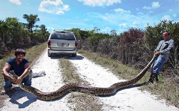 据了解,捕蛇人猎杀的这条蟒蛇,可获得275美元(约合1895元)的薪水。