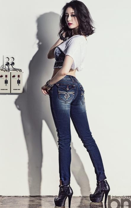T-ara朴智妍最新写真:紧身牛仔露小蛮腰秀性感身材