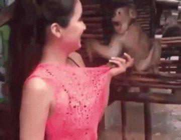 好色的猴子,调戏美女