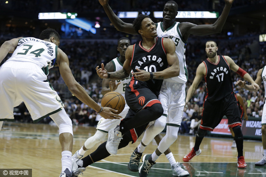 [篮球世界]德罗赞33+9猛龙2-2雄鹿 洛里18分字母哥19中6