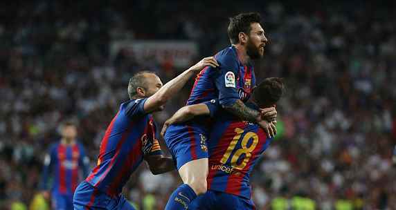 北京时间4月24日02:45(西班牙当地时间23日20:45),2016/17赛季西甲第33轮一场焦点战在伯纳乌球场展开角逐,皇家马德里主场2比3不敌巴塞罗那,卡塞米罗先拔头筹,梅西和拉基蒂奇进球反超,拉莫斯被罚下,J罗扳平。但梅西第92分钟绝杀。巴萨暂以净胜球优势超越少赛1场的皇马领跑。