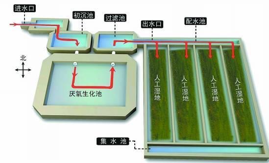 污水净化处理是湿地的重要功能之一。作为陆地和水体过渡带的湿地,其表面充满着水和水生植物,这些植物可以在其组织中吸附有害重金属,同时还参与污水的“解毒”过程,借由吸附、代谢、分解等手段来净化水体。