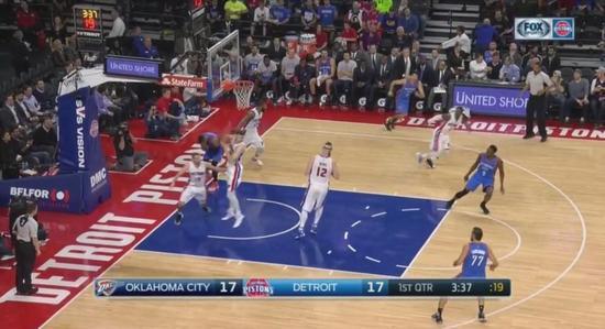 维斯无法回防,整个进攻过程中,雷霆4防5被得分。
